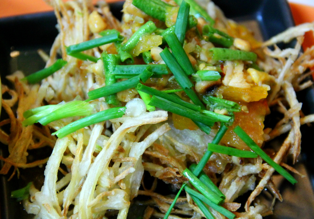 Kun kerran vahingossa saimme tämän ruokalajin eräässä ravintolassa, ihmetytti miksi ihmeessä tämmöinen ruoka pitää olla olemassa, miksi raa´an papaijan suikaleita pitäisi uppopaistaa. Mutta Time for Limen kurssilla syksyllä 2016 tehtynä se oli oikein hyvää. Ehkä sen idea oli se, että sen mukana tuli samaa ihanaa lientä kuin raa´assakin papaijasalaatissa ja kuten aiemmin sanoin, mielestäni juuri tuo liemi on tässä ruoassa pääjuttu.