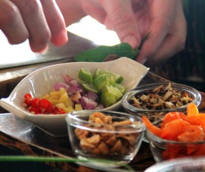 Kurssilla tehdään neljä varsinaista ruokaa, mutta lisäksi on currytahnan tekoa ja mieng kamia. Tässä esittelen kahdella kurssikerralla kokkailemiamme ruokalajeja.