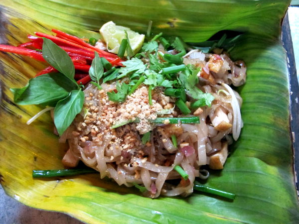 Pad thai on nimistys tietynlaisille paistetuille riisinuudeleille. Joskus joukossa ei ole paljoakaan vihanneksia, mutta pavunversoja ja kevätsipulia on yleensä aina. Lisäksi lautasella pitää olla paahdettua pähkinämurskaa ja limen viipale ruokaa lisättäväksi. Vegaanin pitää tilata pad thai ilman lihaa (katkaravut ovat yleisiä), ilman kananmunaa ja ilman kalakastiketta.