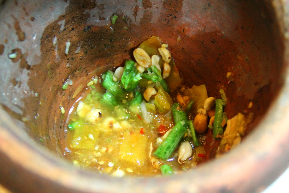 Papaijasalaatti eli som tam on mahtava ruokalaji Thaimaan koillisosista eli Isaanista. Siinä pitää olla sopivissa mittasuhteissa kirpeyttä tamarindista tai limestä, paahdettua pähkinää, makeutta (oikeaoppisesti palmusokeria) ja suolaisuutta soijakastikkeesta. Kasvissyöjän pitää yrittää saada papaijasalaattinsa kojuista ja ravintoloista ilman kalakastiketta ja katkarapuja.