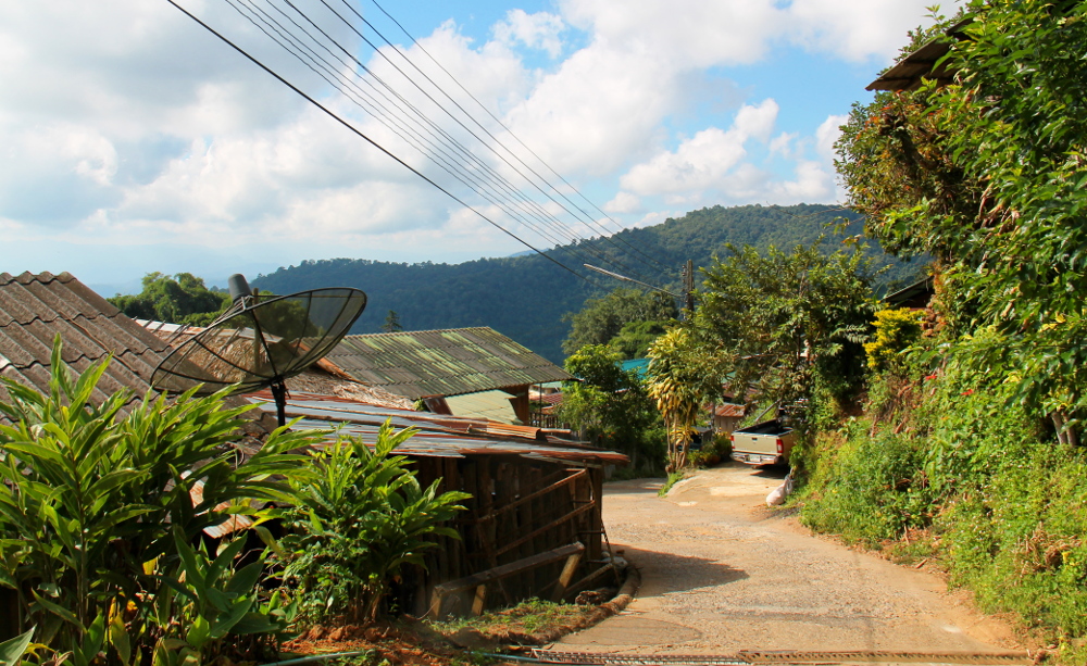 Kun palatsilta jatkaa eteenpäin, tullaan yhteen Hmong-kansan kylistä, joita on Pohjois-Thaimaassa varmasti paljon. Tuo kylä on varusteltu paljon juuri tällaisia turistivierailuita varten, mutta vaikea varmaan elantoa saada noilla vuorilla muin tavoin kuin turismilla ja maataloudella.