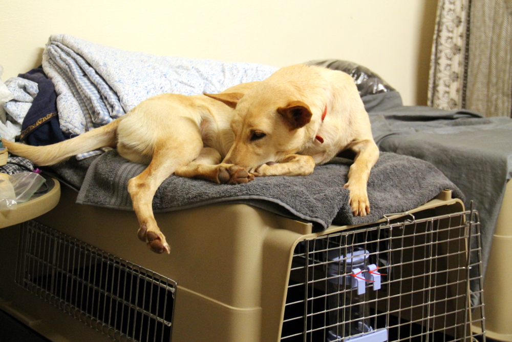 - seuraavana päivänä palautin mopon ja paluutaksikyydillä hain kopit hotellille. Siellä jumittelin koirien kanssa pari päivää ja totuttelin heitä koppeihin.