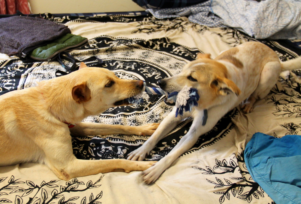 Maaliskuussa ensin minä lensin Suomeen ja pari viikkoa myöhemmin puolisoni. Sen jälkeen en ole matkustellut enkä ole ollut koiristani erossa kuin pari yötä työrupeaman aikana. Nyt en pääse matkoille koirien takia, mutta enhän minä pääsisi töidenkään vuoksi. En minä sen takia olisi ollut ottamatta koiria, että olisin voinut joululomalla käydä viikon jossain tai reissata kesällä tai viikonloppuisin. Ja pitäähän minun lomilla nähdä perhettä ja relata viikonloput sohvalla. Ennemmin ajattelen, että säästän ne rahat siihen, että porukalla muutetaan vaikka Espanjaan vuorille vaeltelemaan.