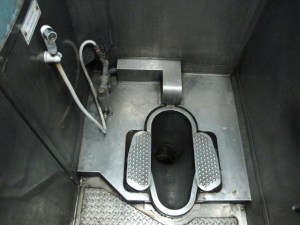 Kiinassa oli joukkovessoja, jotka ovat Euroopassakin joskus olleet normaali ilmiö. Nämä olivat reikä laittiassa -mallia. Romaaneista olen lukenut, miten näihin yleisiin vessoihin on pitänyt jonottaa pitkästi, kun omia vessoja ei ole ollut. Muistaakseni Guilinin rautatieasemalla taas oli vessa, jossa oli ihan koppeja ja muuten tasainen kaakelilattia, mutta eriöiden perällä oli ränni, jossa koko ajan virtasi vesi. Sellaisessa voi olla kivin valita perimmäisin koppi, jottei kaikkien muiden jätökset virtaisi ohi.