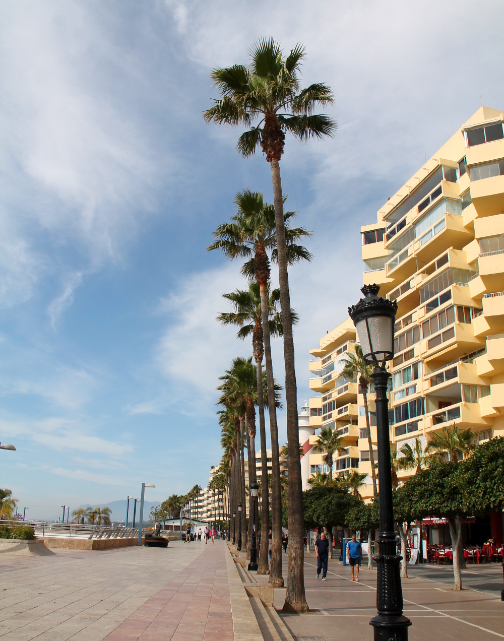 Tutkimme hiukan keskustaa ja suuntasimme rannalle juomaan kahvia ja katselemaan. Totesin, että ranta Puerto Deportivo de Marbellan kohdalla oli ihan kiva ja kaupunki näytti asuttavalta. Tuosta olisi kai voinut kävellä rantakatua pitkin ainakin 10 km etelään Puerto Banukseen, mutta me lähdimme keskustaan syömään.
