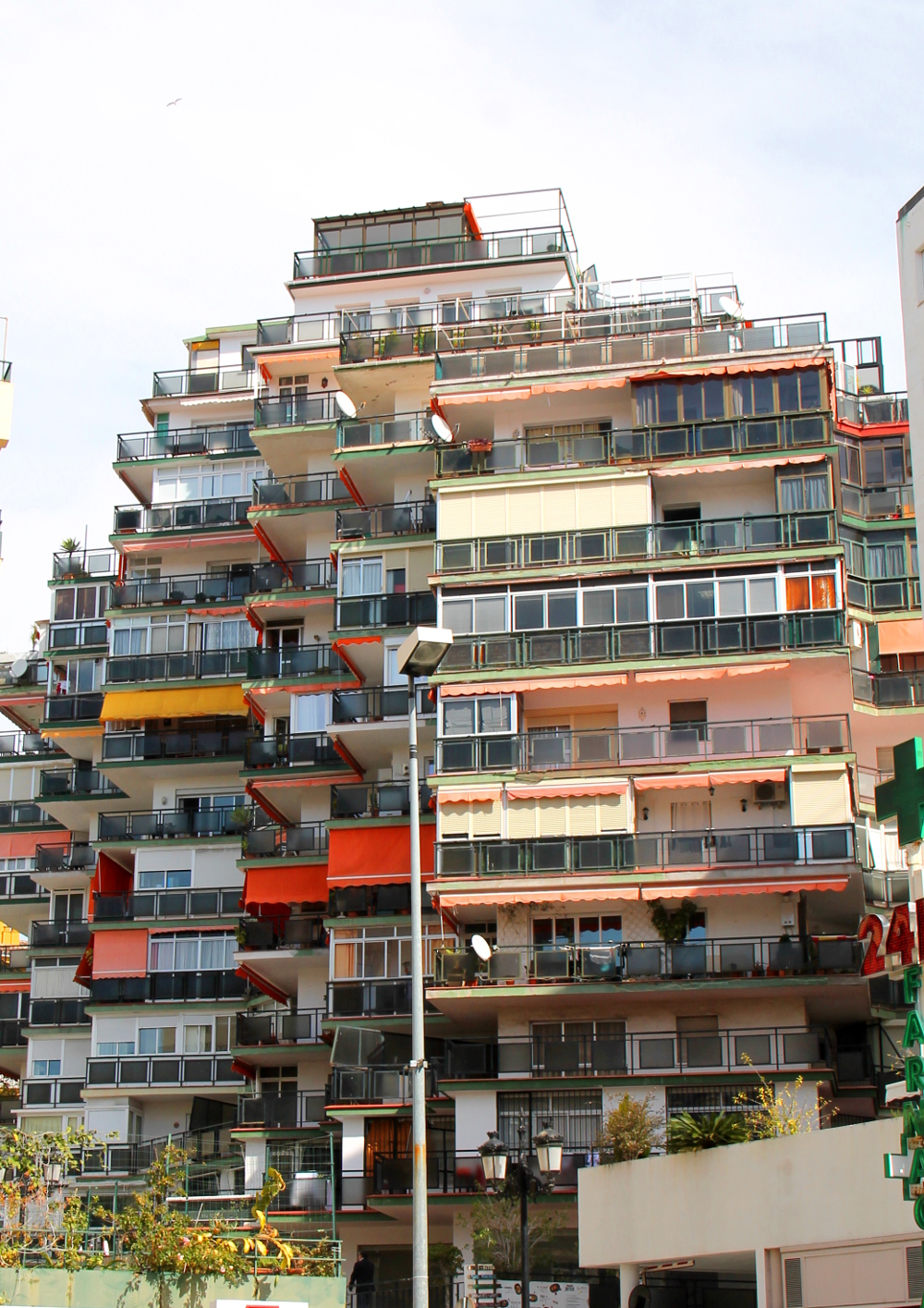 Otimme menomatkalla bussin M220, koska ajattelin siitä näkevän Fuengirolan ja Marbellan välisiä alueita paremmin, jos se kiertelisi kylien keskustoissa. Mutta oikeastaan bussi vain kulki rannanmyötäistä A7-tietä ja pysähteli paljon. Bussikyydillä tuli sellainen kuva, ettei tuolla välillä oikein kunnon kyliä olisikaan. Ehkä juuri tuolla alueella sijaitsevat hotelliresortit, joita ei Fuengirolan keskustassa ollut. Välillä oli myös sääli, miten lähellä rantaa tie kulki, eli tie oli rakennettu merenrannan paraatipaikoille. Jäimme bussin kyydistä sitten kun alkoi näyttämään, että oltaisiin Marbellan keskustassa. Pysäkki oli varmaankin Marbella Centro.