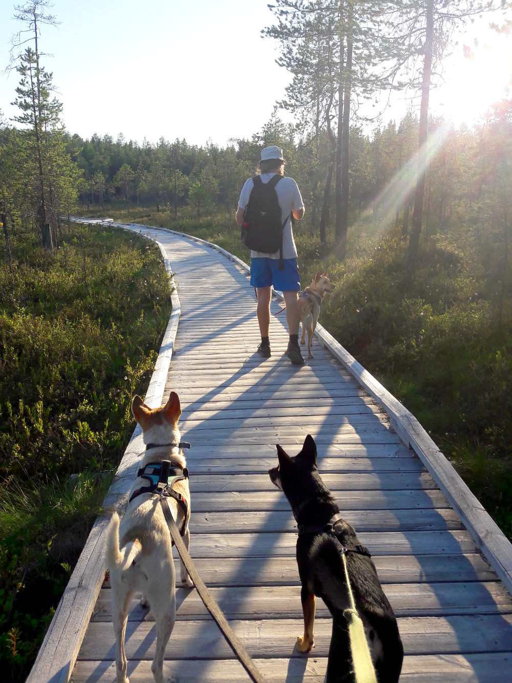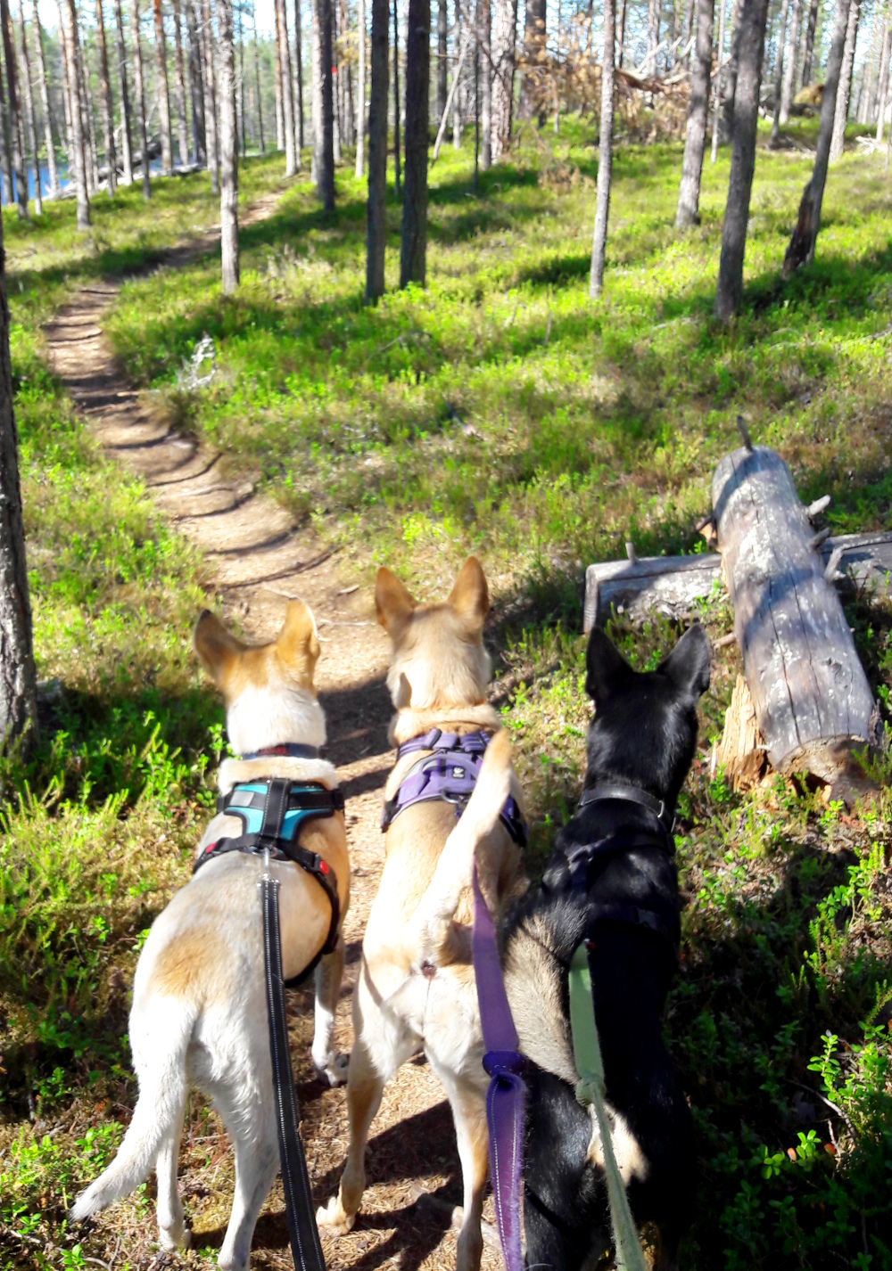 Teimme matkailuautolla kolmen koiran kanssa noin viikon pituisen reissun. Koirien takia ja varmaan muutenkin minua nykyisin kiinnostaa matkailussa ruoan lisäksi lähinnä luontokohteet ja päiväpatikointi. On tärkeää päästä tarjoamaan koirille kivaa tekemistä. Ne hyppäävät matkailuautoon superinnokkaina ja kulkevat tosi hienosti metsäpoluilla. Parit Hossan porot aiheuttivat kuitenkin hämminkiä ja piti harhautella koiria pois poronäkymiltä, koska varsinkin Alma-koira meni poroja nähdessään aivan tolaltaan.