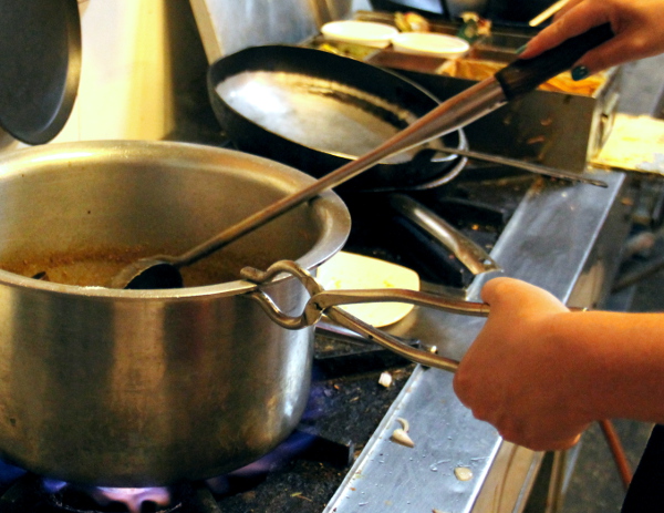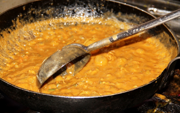 Ensin valmisteltiin kolme pohjakastiketta eli mother saucea, jotka toimivat pohjana useille intialaisille ruoille. Näiden pohjakastikkeiden aineksia paistettiin ja sitten tehosekoittimella käsittelyn jälkeen valmiit tahnat paisteltiin vielä uudestaan runsaassa öljyssä kasaan. Sitten kun lopulta tehtiin varsinaisia ruokia, paisteltiin nekin valtavassa määrässä öljyä. Vaikutti siltä että ruokiin olisi tarkoitus saada uppoamaan öljyä niin paljon kuin mahdollista.