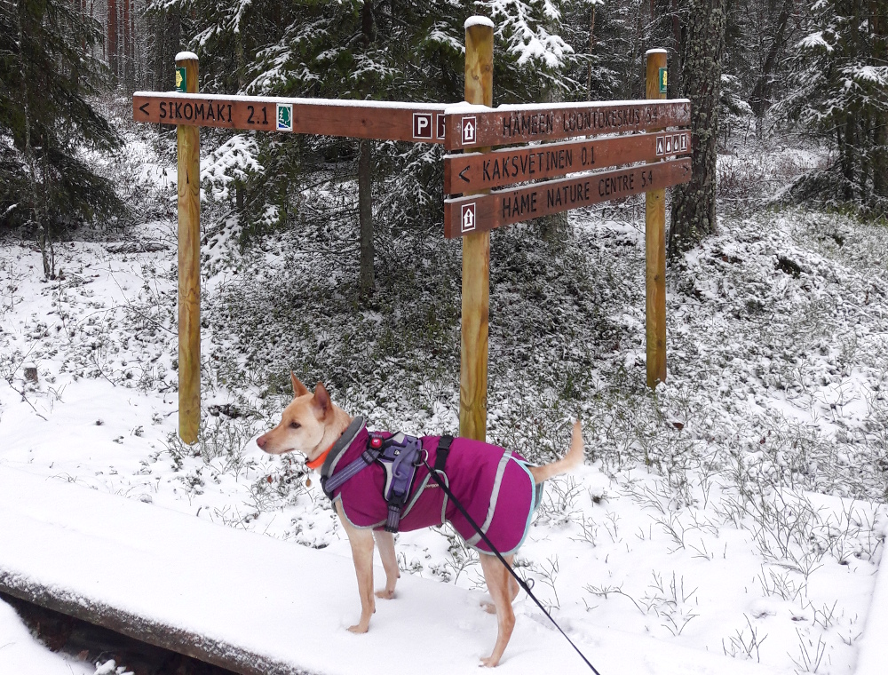 Metsäpoluilla vietetty aika on parasta aikaa. Menin itsenäisyyspäivänä lomalle Liesjärven kansallispuistoon kolmen koirani kanssa. Sinne on Helsingistä alle kahden tunnin ajo. Kävimme koko porukalla siellä syyskuussakin, mutta nyt tuli tallattua eri reittejä. Minua mietitytti miten pärjään yksin kolmen koiran kanssa metsäpoluilla ja autoillessa, normaalisti retkeilen puolisoni kanssa.