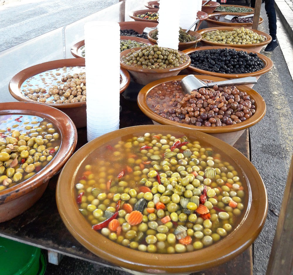 Hoidin ruokailuni käymällä paikallisessa Eroski-supermarketissa kaupungin länsilaidalla ja sieltä ostin guacamolea, hummusta, dippivihanneksia ja hedelmiä. Esimerkiksi viinirypäleet maistuivat kovin paljon paremmilta kuin mitä Suomesta saa. Ostin myös paikallisia kovakuorisia klementiinejä, jotka eivät kuitenkaan olleet kirpeitä, vaikka kovuudesta voisi niin kuvitella. Kauppa oli sunnuntaina kiinni ja päivän kävelyistä väsyneenä kävin syömässä tylsän riisiwokin keskusaukion ravintolassa.