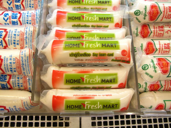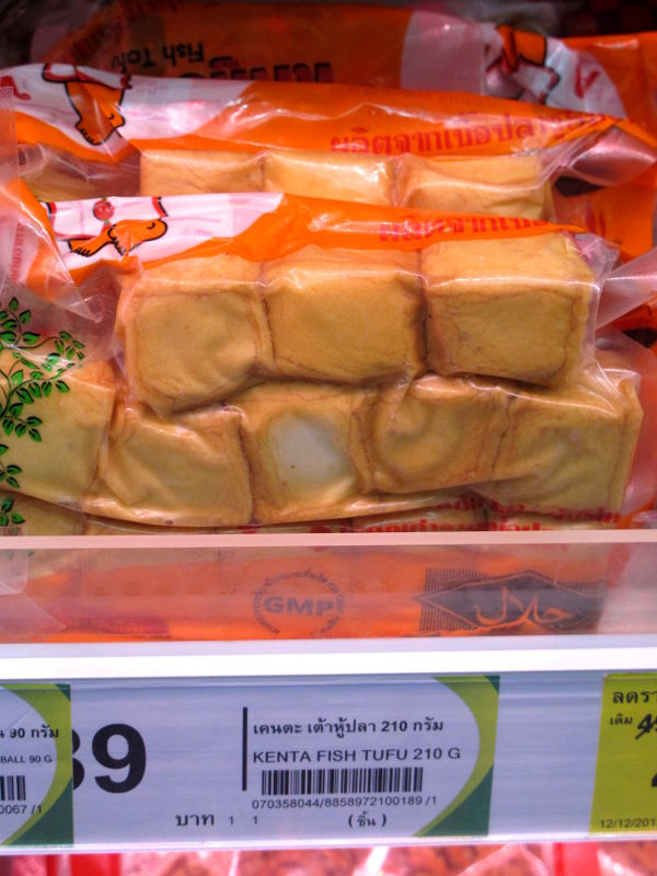 Jos annoksesi pehmeä tofu on kauttaaltaan kummallisen keltaista, se saattaa olla kananmunatofua, kuten tämä oikealla oleva. Mutta joskus soijatofukin on päältä keltaista.On myös kalatofua.Tämä Lactasoyn soijamaito on vegaaninen, mutta useimmat tämän merkin soijamaidot eivät ole. Eli jos sinulle tulee Thaimaassa vakiopaikka kahvitella, niin kannattaa tarkistaa mitä soijamaitoa käyttävät. Myös Hershey´sin soijamaidot sisältävät lehmän maitoa.