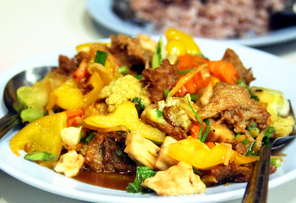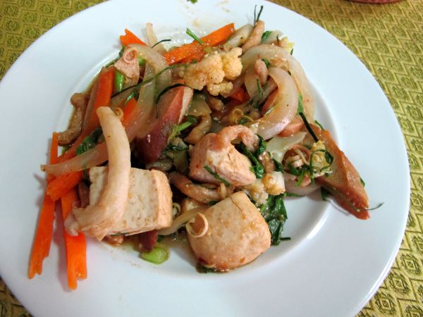 Niputan kaikki erilaiset ”paistettuja vihanneksia” -ruoat yhteen, vaikka varmasti jokaiselle niistä löytyykin omat nimensä. Turistiravintoloissa olen usein tilannut ”fried vegetables with tofu” ja riisiä siihen mukaan. Yleensä sieltä silloin tulee mitä sattuu vihanneksia jonkinlaisen stir fry -kastikkeen kera. Joskus ruoan voi saada cashewpähkinöiden kera.