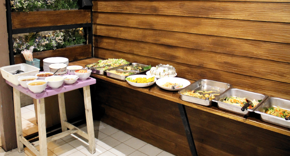 Ensimmäisenä iltana oli pakko mennä May Kaidee´sin buffetiin Khao San Roadin taakse, koska sattui olemaan lauantai ja siten buffet-ilta. Vaikka maistelin ruokia kohtuullisesti, niin siitä jäi vähän sellainen olo, etten sitten enää himoinnut lähteä koko loppuviikoksi kiertelemään Bangkokin kasvisravintoloita. Ei yhdellä lyhyellä lomalla ehdi syödä kaikkea 😀