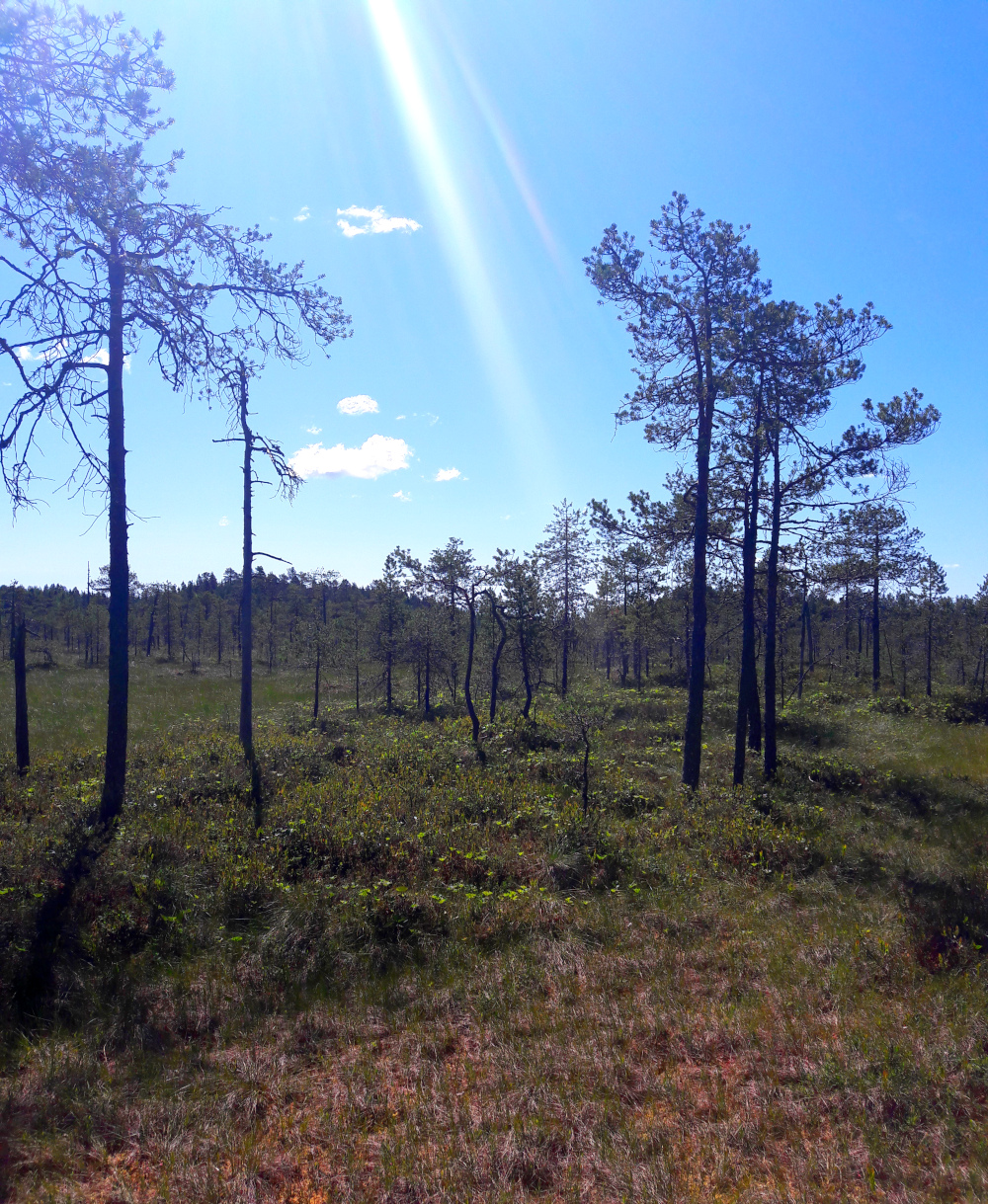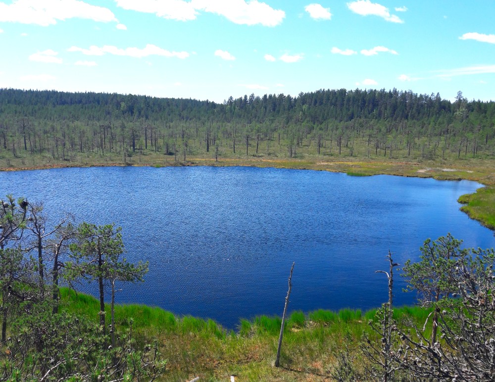 Rakastan suolampia. On kiva kuvitella pieni mökkeröinen jonkun kinttupolun päässä suolammella, jonne olisi rakennettu pitkä laituri läpi mättäiden ruskeasävyisen veden äärelle. Olisi hienoa jos lampi olisi oikein pieni, mutta sen ympärillä olisi värikkäät ja leveät suomättäät. Paikka saisi sijaita korkeiden harjujen keskellä niin, ettei sinne tuulisi oikein koskaan. Hiidenportin kansallispuistossa pääsin viime kesänä näkemään tällaisen aivan mahtavan pitkän laiturin mättäiden yli. Oli todella kuumia päiviä ja lampeen oli parasta pulahtaa.