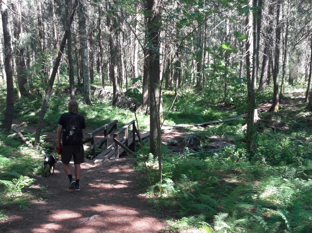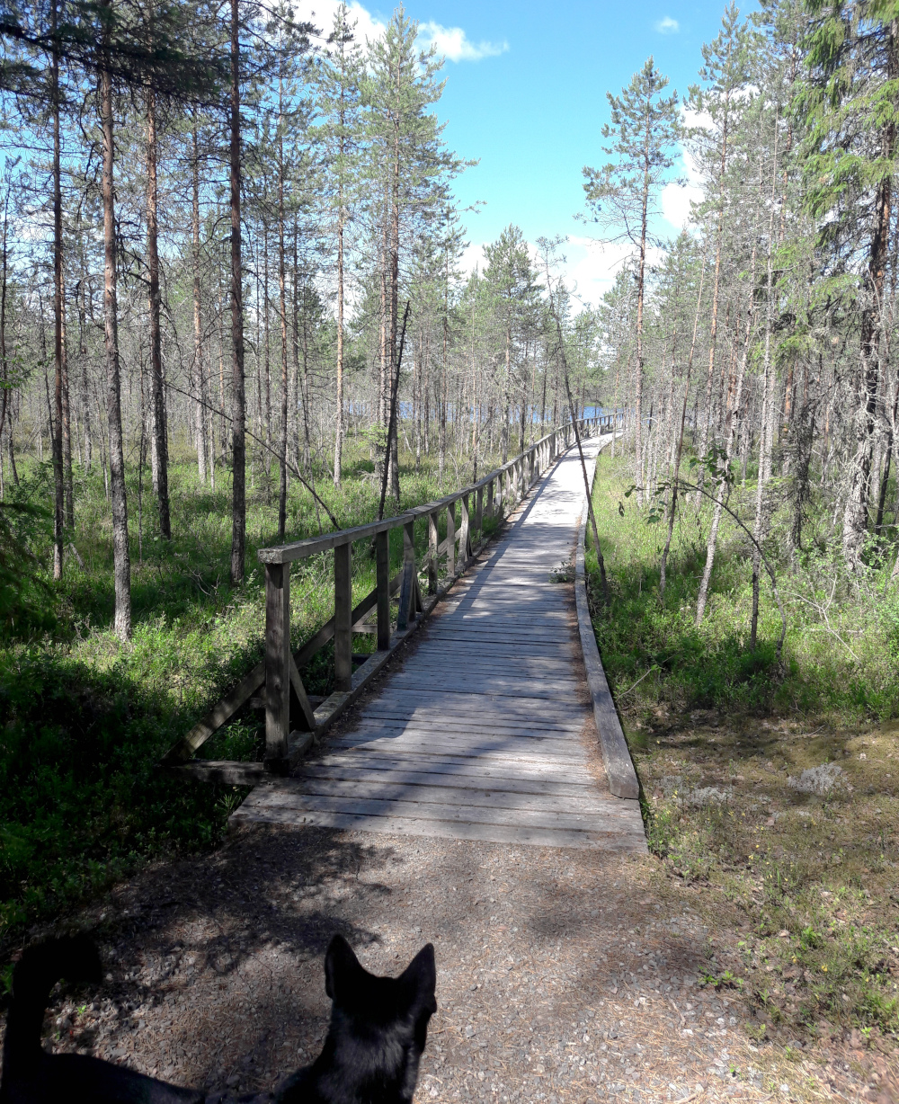 Tänä kesänä halusin ottaa opikseni, että kivoja kävelyreittejä voi löytää useitakin melko pieneltä alueelta, eikä siis ole pakko ajaa satoja kilometrejä suuntaan ja toiseen. Viime kesänähän Kainuun reissumme jälkeen tiirailin karttaa ja huomasin että Tiilikkajärven ja Hiidenportin kansallispuistojen lähellä olisi riittänyt polkuja tallattavaksi pidemmänkin reissun ratoksi eikä olisi tarvinnut viettää niin paljon aikaa autossa (lue: Useita lähekkäisiä retkikohteita Kainuussa (2018) >>). Nyt siis yritin netistä etsiä kaikenlaisia luontopolkuja reittimme varrelta.