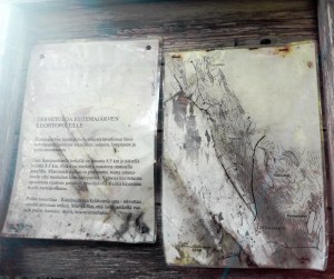 Kutemajärven luontopolun lähtöpaikka on entisen kyläkaupan vierestä 260 metriä maantietä etelään, kunnes oikealle on tienviitta luontopolulle. Tuon tienviitan löysimmekin ja kaksi opastetaulua. Polkua emme vain nähneet pusikossa eikä meitä houkuttanut lähteä sitä hirveästi etsimään. Kokeilimme kulkea reittiä sen loppupäästä lähtien, mutta viitsimme sitten kävellä hiekkatietä vain jonkun matkaa. Jäi reitti näkemättä ja jäi epäselväksi pidetäänkö sitä juurikaan enää yllä. Ehkä se olisi sieltä löytynyt. Mutta tästä yrityksestä tuli mieleen se, että ehkä siinä on ihan syy miksi minunlaiseni laiskat patikoijat suuntaavat ensinenässä kansallispuistoihin eikä tuntemattomammille taipaleille.