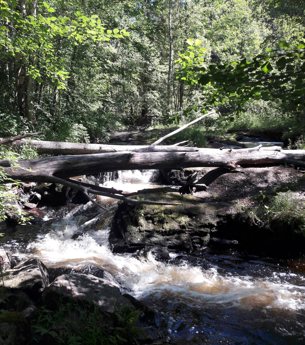 Leivonmäen kansallispuiston pohjoisosassa on vielä 3,5 km pituinen Koskikaran kierros. Mietin mitä tuo luontopolku voi vielä antaa lisää kahtena aikaisempina päivinä nähtyihin suolampi-, harju- ja suppamaisemiin nähden. Oli siis yllätys, kun heti Koskikaran parkkikselta (entisen koulun piha) metsään mennessä tuli ihan uudenlaiset maisemat. Siellä oli ihan ennakoimaton tunnelma saniaisineen ja veden lorinoineen. Kierros perustuu jokeen, joka oli pieni ja nätti kuohuvine ja seesteisempine kohtineen.