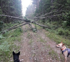 Toisena päivänä kävelimme Mäyränkierroksen ja teimme pistokävelyn Soimalammelle, mikä kannatti. Siitä kun lähdimme vielä eteenpäin kohti Rutalahtea, oli 15 min kävely ikävää metsäautotietä, jolle oli kaatunut hirveästi puita, joten käännyimme takaisin. Kun seuraavana päivänä kävelimme yhtä lyhyen matkaa tuota polkua Rutalahden suunnasta Koskikaran luontopolulta käsin, ei sekään tehnyt suurta vaikutusta tavallisilla maisemillaan. Kenties tuo polku on vain mahdollisuus yhdysreittiin, tai sitten siellä olisi ollut hienoa metsää jos olisi viitsinyt jatkaa.