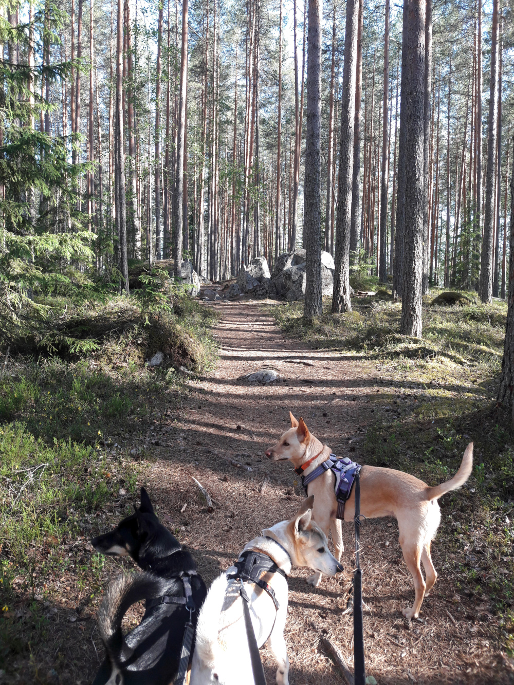 Näillä poluilla mietin, että on niin eri asia päästä kävelemään näitä raikkaita mäntymetsiä kuin mennä suin päin rämpimään jonnekin risuiseen kuusikkoon. Minä aina kuvittelen olevani lällärikävelijä ja tosipatikoijien suuntaavan jonnekin sysimetsään kompassin kanssa.