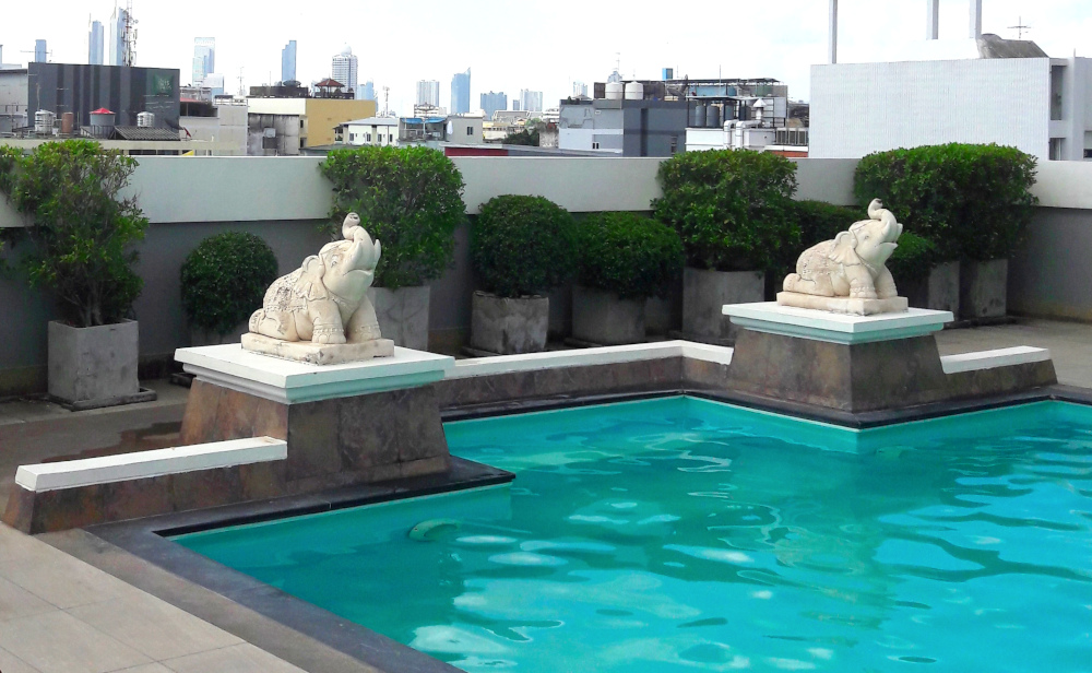 Toinen Rambuttri Village Innin uima-altaista. Toukokuussahan oli kuningas Maha Vajiralongkornin kruunajaiset ja yhtenä juhlien harjoittelupäivänä uima-altaat olivat ikävä kyllä suljettuna.