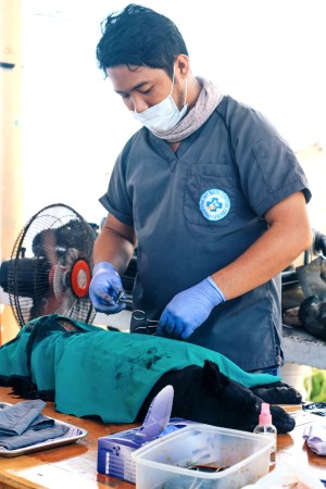 Halusimme kuitenkin auttaa tilannetta laajemmin. Kun aloitimme, ei Siargaon saarella ollut vielä varsinaista eläinlääkäriä, mutta viereisellä saarella eläinlääkäriasemaa pitävä Dr. Oriel Echavez teki ehdotuksen, kun hänelle asiasta puhuin. Hän lupasi tuoda vapaaehtoiset eläinlääkärit ja kaikki operaatiohin tarvittavat lääkkeet, jos vain järjestäisin tapahtumapaikan ja saisin ihmiset ja koirat paikalle. Filippiineillä on paljon katukoiria, mutta aika suuri osa näistä asuu jossakin talossa, eli niillä on omistaja, mutta koirista ei juuri huolehdita varojen ja tiedon puutteen vuoksi. Ensimmäinen kaksipäiväinen Animal Health Day- tapahtuma pidettiin joulukuussa 2017 ja sen aikana kastroimme koiria ilmaiseksi, annoimme rabiesrokotuksia, teimme terveystarkastuksia ja lääkitsimme kapia ja muita vaivoja. Ensimmäisessä tapahtumassa olimme toivottaneet tervetulleiksi myös siat, vuohet ja vesipuhvelit, myöhemmissä tapahtumissa olemme keskittyneet koiriin ja kissoihin.
