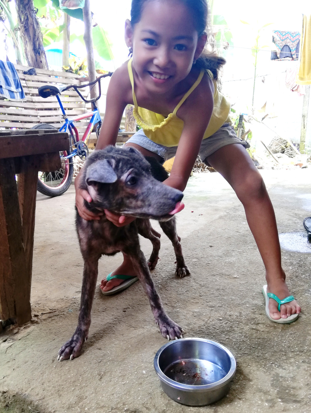 Moni on matkoillaan nähnyt kärsiviä eläimiä ja miettinyt miten niitä voisi auttaa. Kun muutin Filippiineille, tästä tuli päivittäinen tila, sillä huonokuntoisia koiria tuli jatkuvasti vastaan. Hyvin nopeaan tahtiin meille tuli neljä koiraa, kuka mistäkin. Papi adoptoitiin raksalta, Pasi syntyi talomme alle, jo edesmennyt Rauno poimittiin rääpäleenä kadulta ja Tiikerikakku vai ilmestyi viidakosta pentuna. Ja nyt koiria on kuusi.