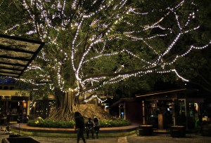 Valaistu puu Nimmanhaemenilla.