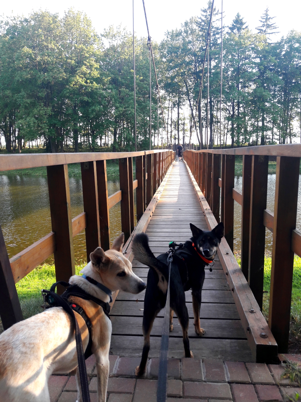 Pajiesmeniain keskustassa on puisto, josta pääsee riippusiltaa pitkin toiselle puolelle jokea tai järveä kävelemään. Siinä on myös pari pientä kauppaa. Koirien ulkoilutukset hoituivat meillä siten kivasti täällä illalla ja aamulla. Leirintä maksoi 15 euroa.