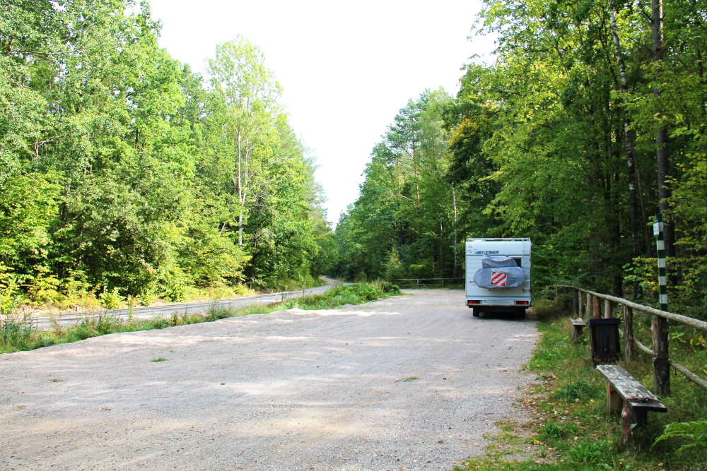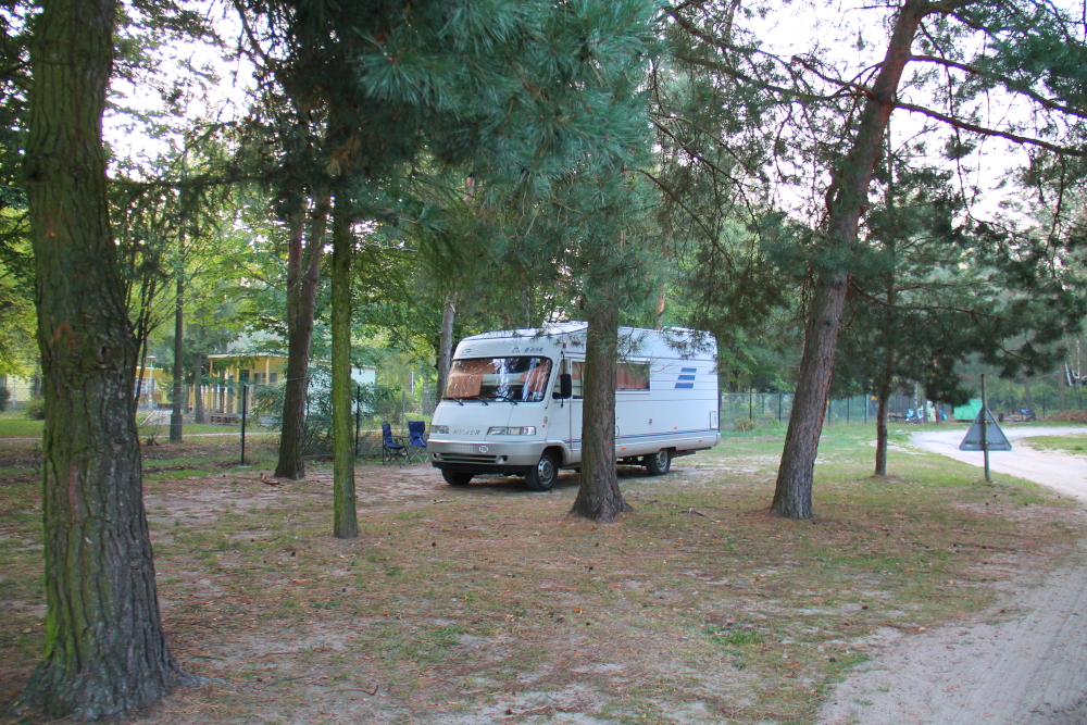 Matkan varrella Suwalkista Lubliniin ei oikein ole leirintäalueita. Pari paikkaa bongasimme varmuuden vuoksi Park4Night -sovelluksesta, mutta me maksamme ihan mielellään pari kymppiä siitä, että voimme olla varmoja ettei meitä häiritä yöllä ja jotta pääsemme suihkuun ja sähköön.