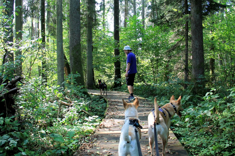 Leirintäalue Martalla oli ihan hyvä, leiriytyä, mutta ehkä se on enemmän mökinvuokraajien ja kausipaikkalaisten mesta. Järven rannalla oli kävelytie, jossa oli hyvä mennä koirien kanssa. Olisi alueen edessä olevassa metsässä ainakin joskus ollut joku polkukin, mutta nyt se oli hieman ryteikköistä ja aloin jännittää että puskista ilmestyisi joku vapaana ulkoileva koira. On kivempi kävellä koirien kanssa semmoisessa paikassa, jossa näkee vähän pidemmälle, jotta ehtisi huomata irtokoirat ajoissa.