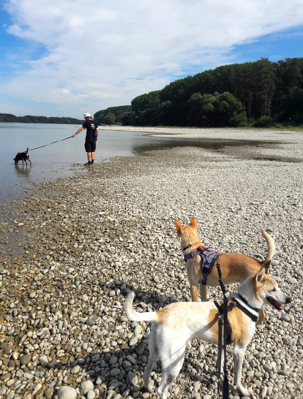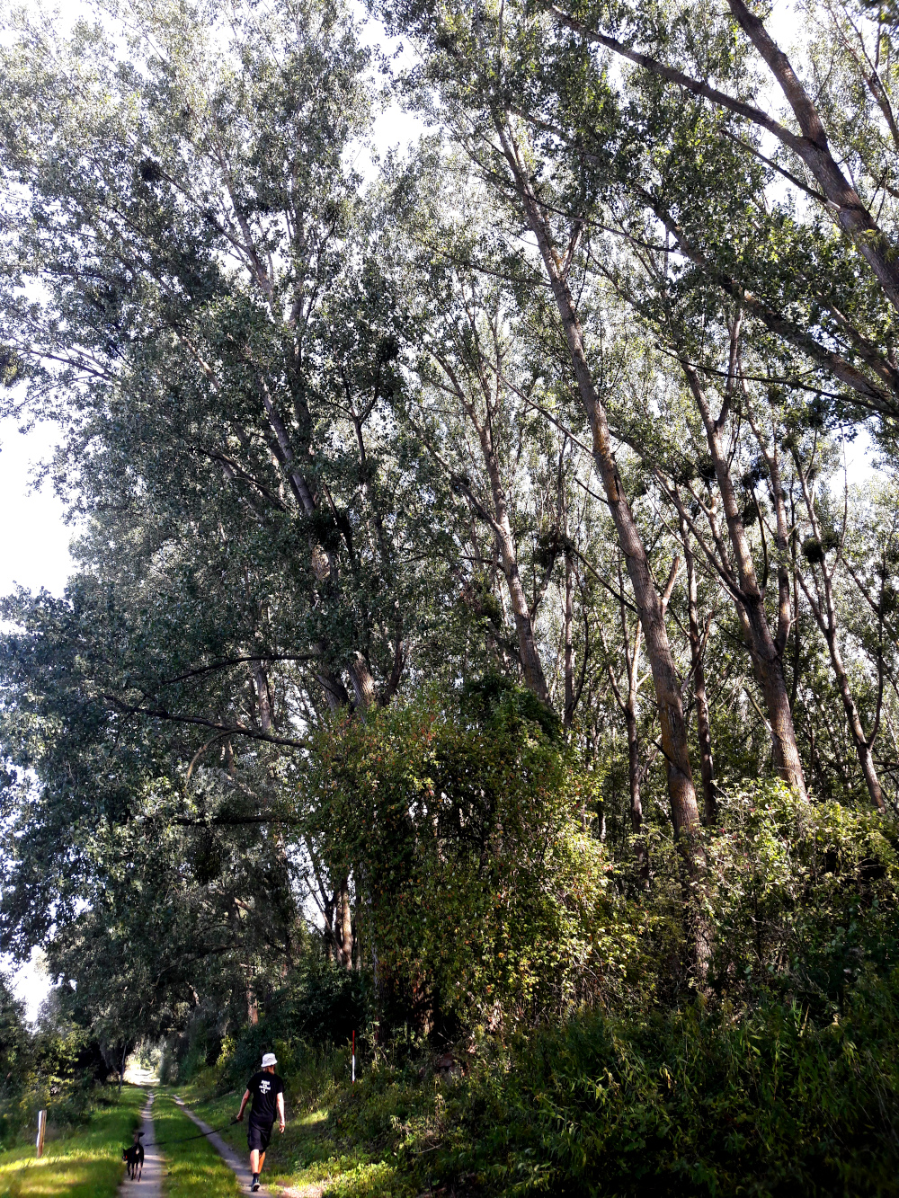 Olin arvellut Tonavajoen rantojen olevan aika tylsät ja ehkä vähän ryteikköiset eli semmoiset, joissa viihtyvät paremmin linnut kuin ihmiset. Sitä en tiennyt, että joki oli aika kirkas ja sen rannoilla oli välillä leveästikin melkein valkoisia sileitä kiviä. Jossain kohtaa kun katsoin vastarannalle, olisi voinut kuvitella vaalean rannan olevan Thaimaan hiekkarantaa ja rannalla kasvavien puiden olevan casuarinoja. Muuten sitten ihmettelin kun rannalla olevan polun tai tien laidalla kasvoi jättibalsameja eli paukkukukkia, joita Suomessa yritetään hävittää. Itsekin tuli kesällä niitä riivittyä ja nypittyä pois kasvamasta ja leviämästä toisten kasvien kustannuksella.