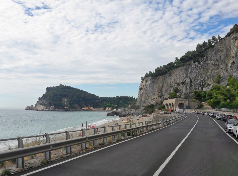Siirryimme motaria pienemmälle rantatielle jo Savonan kohdilla päästäksemme Spotornoon. Olin katsonut kartasta, että Spotornon kohdilla motarilta rantaan kääntyvä tie olisi pelottavan kiemurainen ja korkeuksista laskeutuva, joten ajelimme sitten hiljakseen rantatietä Savonasta kohti Spotornon Camping Leota.