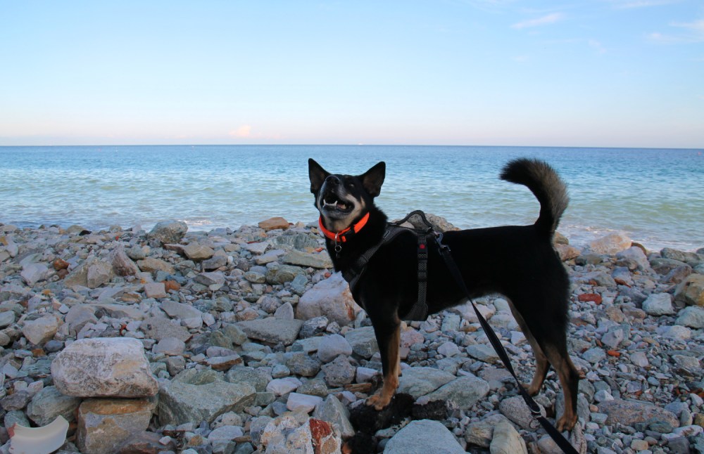 Camping Leosta lähtee kävely- ja pyöräilyväylä kohti rantaa koirapuiston ohi, mutta tuolla tiellä saa varoa, ettei joku pidä koiraansa vapaana. Oikeastaan kaikkein mukavinta koiriemme kanssa on kävellä paikoissa, joista näkee kauas ympärilleen. Spotornossa oli oma koirarantansa, mutta alue oli hieman ryönäinen. Siinä oli joku parkkipaikan tapainen alue vieressä, mutta ranta oli ihan ok. Ei meidän koirat siellä kuitenkaan uineet, koska ne jännittävät rantahiekalle paiskautuvia aaltoja.