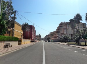 Iltaisin auki oli vain Spar-kauppa ja sen vieressä oleva kiinalainen ravintola sekä leirintäalueen naapurissa oleva baari. Päivällä yksi muu ravintola piti oviaan avoinna. Tosin emme kävelleer Spar-kauppaa etelämmäksi, mutta tyhjältä ja pimeältä sielläkin näytti. Leirintäalueellamme oli joku ravintolasta kertova kyltti, mutta meille ei millään lailla kerrottu heidän tarjoavan palvelujaan. Muuten kylä oli autio. Siellä ei näkynyt joidenkin kiinni olevien ravintoloiden lisäksi olevan mitään säpissä olevia kioskeja. Toisaalta Espanjassa on välillä se kummallista, ettei kaupat mainosta itseään millään kunnollisella nimikyltillä. Jos kioskien edessä on rullaovi kiini, ei siitä voi mitenkään tietää mitä toimintaa siinä olisi, jos ovi olisi auki.