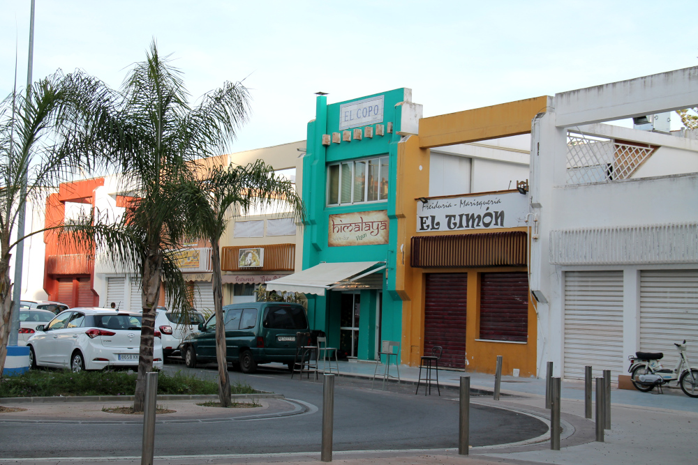 Rannan Paseo Maritimo -kadun takana oli heti kaupungin keskusta kävelykatuineen. Tapoimme siellä aikaa odottaessamme kasvisravintola Himalayan avautumista kello 19.30. Mielestäni on hieman riskaabelia nimetä ravintola Himalayaksi, koska siitä saa vaikutelman pelkkää nepalilaista ruokaa tarjoavasta paikasta Himalayassa oli kuitenkin kaikenlaista muutakin. Siellä oli salaattivalikoimaa, burgeria, vegaaniversioita perinteisistä tapaksista ja mitähän kaikkea. Tarjoilija, joka oli varmaan myös omistaja, puhui hyvää englantia ja oli hyvä tyyppi. Ruoastakin tykkäsimme. Otin mangosalaatin, jota sai nyt kun alueella (Malagan provinssin Axarquia) oli mangoaika. Otin myös ruusuvesilassin kun kerrankin sellaista sain (Intiassa en ole saanut lehmänmaidotonta lassia koskaan) sekä tapaslistalta vartaan. Matkaseura kokeili paikan burgeria.