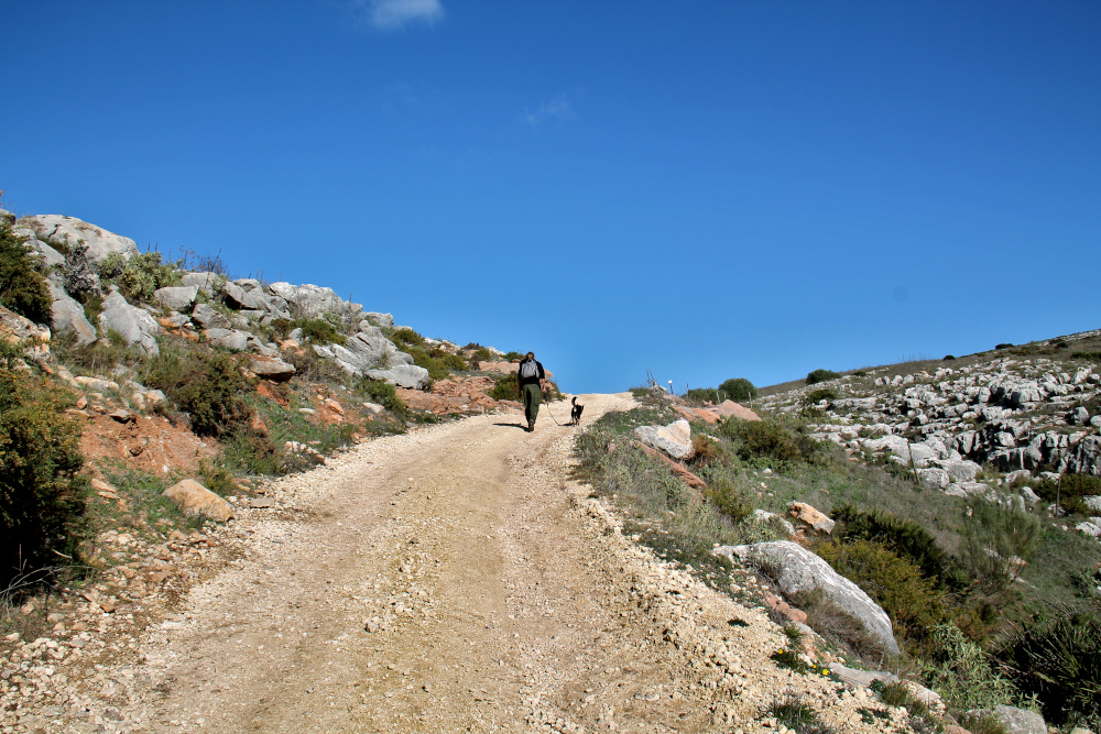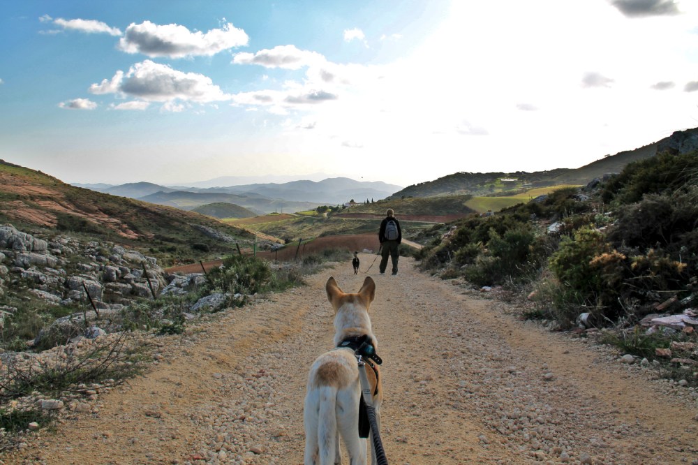 Länsipuolella on Sierra de Chimenean vuori ja sen korkein kohta Camorro Alto. Sielläkin ihmiset patikoivat, mutta en ole vielä löytänyt netistä tietoa selkeistä poluista eikä minua oikein huvita lähteä summa mutikassa kivikkoon kävelemään koirien kanssa. Tykkään kävellä ennemmin loivassa helpossa maastossa kuin ahkeroida ylämäissä.
