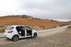Vuokrasimme käytössämme olleet autot etsimällä niitä Rentalcars.com -hakuportaalista. Vinkatkaa pliis, jos tiedätte parempia. Meitä ei kiinnosta yhtään mitkään hienot autot. Merkitystä on vain sillä, että olisi menopeli jolla pääsee minne haluaa. Halvimmat autot ovat ihan pieniä ja niissä voi olla kehnosti tehoa Andalusian ylämäissä. Ensimmäisessä autossamme kyytiin mahtui aika huonosti neljä ihmistä ja iso kissankoppa ja lopulta matkustimme lentokentältä kotiin koppa sylissäni pelkääjän paikalla.