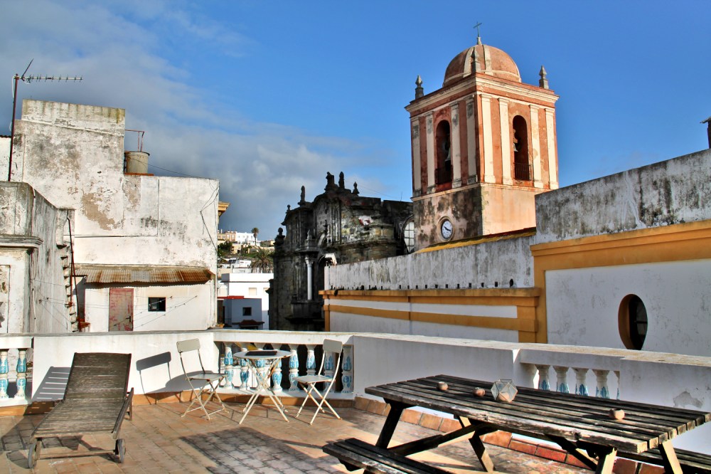 Varasimme Tarifan vanhasta kaupungista neljäksi yöksi halvimman tarjolla olevan asunnon ja selvitin etukäteen, että termi ”pet-friendly” kattaa kokonaiset kolme koiraa ja yhden kissan. Tarkistin että majapaikkamme Casa del Coronelin hinta olisi heinäkuussa yli kolminkertainen. Nyt maksoimme neljästä yöstä vain 127 euroa (sis. 25 euron siivousmaksun). Kämppä oli tosi hieno ja siinä oli iso kattoterassi, jota emme kuitenkaan juuri käyttäneet, koska tykkäsimme lämmitellä sisällä ja koska emme voineet antaa eläinten olla matalakaiteisella terassilla vapaina. Asunto oli meille pieni, joten emme kai voi harkita tuota asuntoa parin kuukauden talviasumiseen tulevaisuudessa.