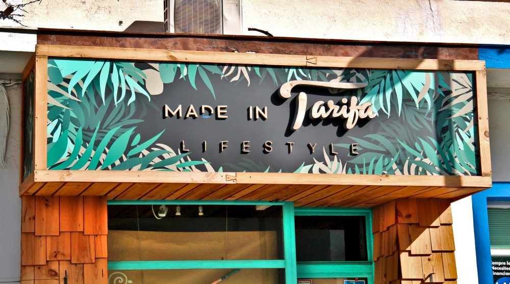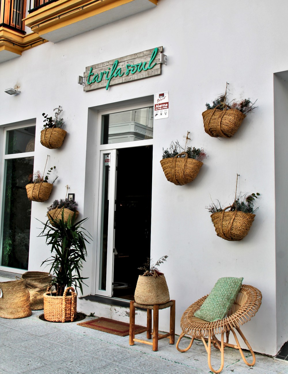 Tarifassa oli aika mahtavia vaatekauppoja ja muita myymäliä, jotka miellyttivät tällaisen vanhan hipin silmää. Logot ja kyltit olivat hyvännäköisiä ja sisältä löysin kivoja kuoseja ja boheemeja tuotteita. Sama juttu oli ravintoloiden suhteen varsinkin rannalla. Espanjassa ihmisten käden jälki ei ole juurikaan miellyttänyt minua esteettisesti ja olen ihmetellyt muovikalusteisia kuppiloita ja raskasta sisustusta. Tarifassa on ihan eri näköistä ja turkoosin siniset sävyt ovat suosittuja.