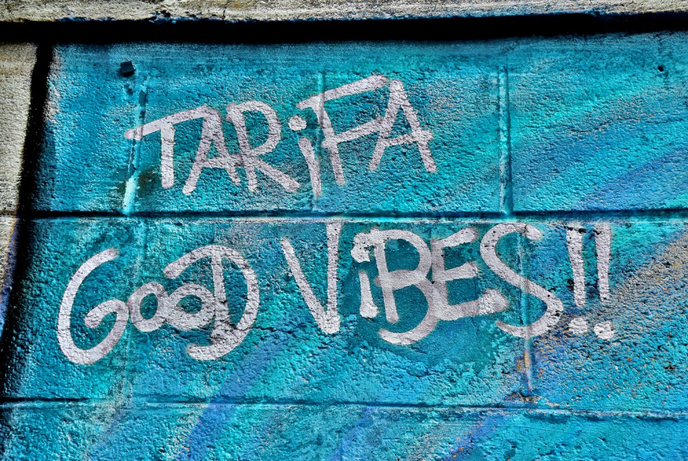 Kävimme Tarifassa tammikuun loppupuoliskolla ja silloin osa ravintoloista ja palveluista on kiinni. Esimerkiksi Happy Cowhun merkityt kasvisravintolat olivat kiinni tammi- ja helmikuun tai ”talvikauden” ja muistakin kasvisruokaa tarjoavista paikoista monet eivät olleet auki. Emme siis istuneet ravintoloissa emmekä kahviloisssa, vaan ostimme ruokaa kaupasta, söimme huoneistossamme ja hengailimme eläinten kanssa. Tarifassa olisi kesäisin varmaan ihan eri tunnelma kuin mitä nyt oli. Olisi jännä nähdä kaikki baarit ja ravintolat auki ja täynnä asiakkaita.