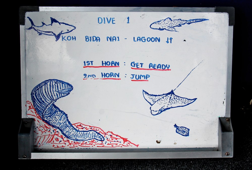 Halusin tällä lyhyellä reissullani käydä sukeltamassa vain yhtenä päivänä ja olin ajatellut kohteen olevan Hin Daeng, koska se on kaikkein hienoin sukelluspaikka tuolla alueella ja olen nähnyt siellä useita paholaisrauskuja. Sinne olisin kuitenkin halunnut nopealla speed boatilla, koska hitaalla isolla veneellä sinne kestäisi ajaa jopa 4 tuntia. Mutta koska tätä ei ollut Lanta Diverilla tarjolla minulle sopivina päivinä, valitsin sitten Bidan reissun. En viitsinyt lähteä kyselemään muista liikkeistä.