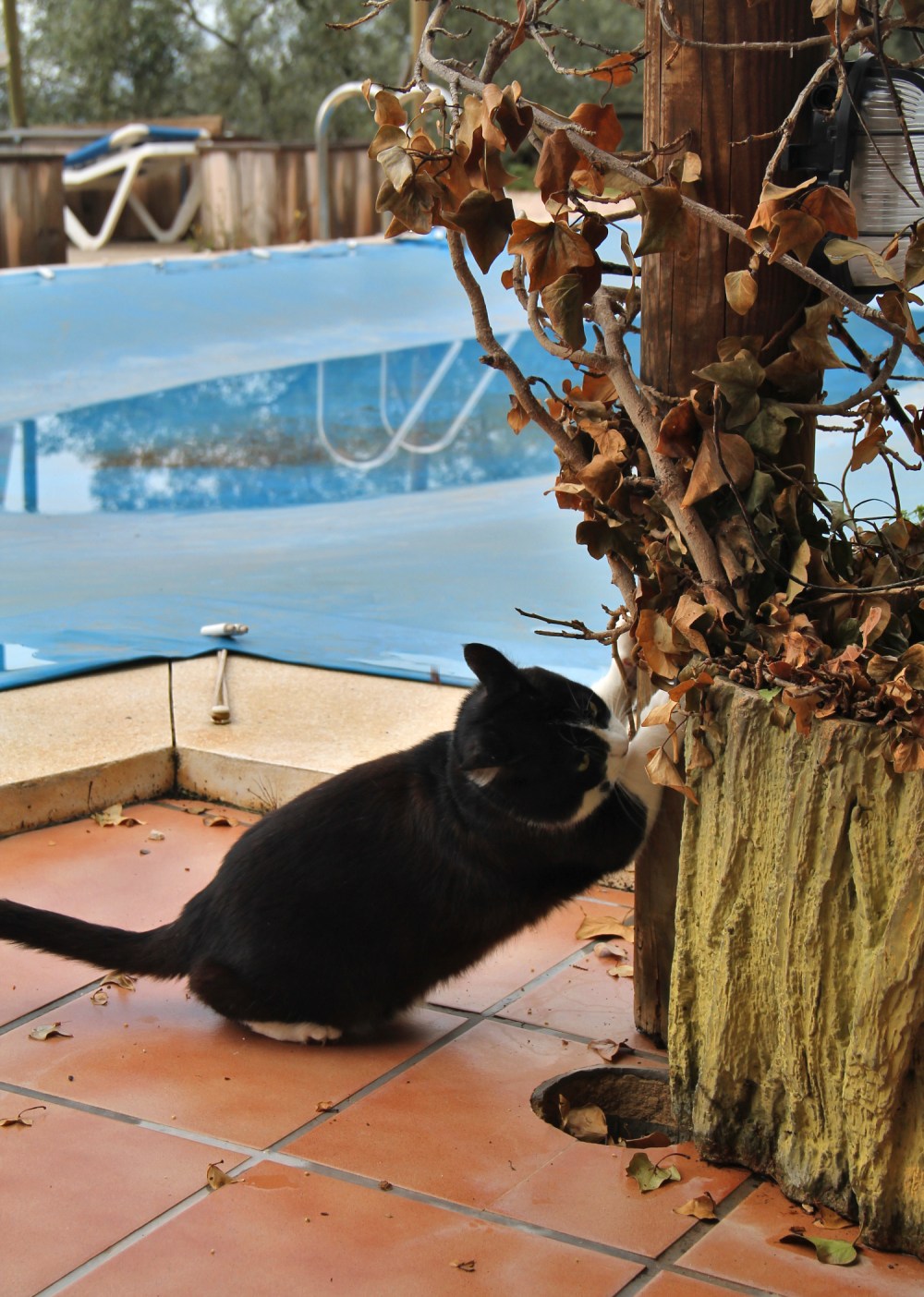 Espanjan ulkonaliikkumiskiellon aikaan ei ole luvallista lähteä patikoimaan, joten nyt tulee koluttua vuokraamamme talon pihatonttia. Mikä onni onkaan, kun meillä sellainen on. Koiriemme ja kissamme vuoksi se oli tärkein kriteeri talvikodin suhteen. Siksi asustelemme tämän talven syrjässä kaukana ruuhkaiselta rannikkokaistaleelta, koska rannikolla tällaiset talot olisivat harvinaisempia ja kalliimpia.
