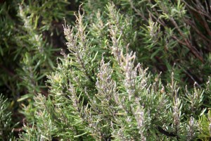 Rosmariinipensaan kukat ovat kuihtuneet.