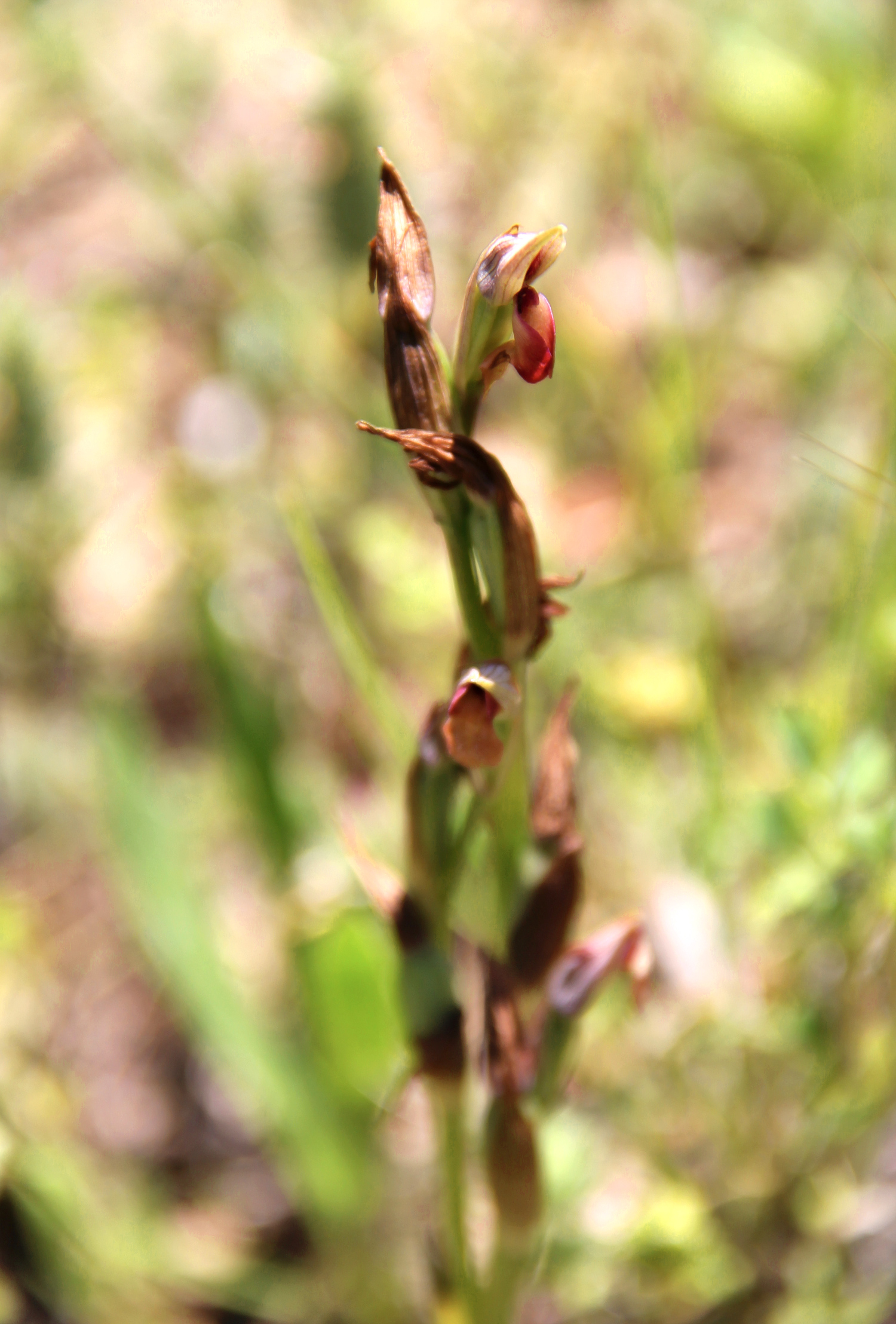 Tämä saattaa olla ihan sama kirkiö kuin edellisetkin, mutta oli joko haalistunut tai muuten ruskeampi. Varmaankin serapias parviflora. Kuvattu ja lisätty toukokuun lopussa. Paikkana Antequeran La Alhajuela -metsän polut.