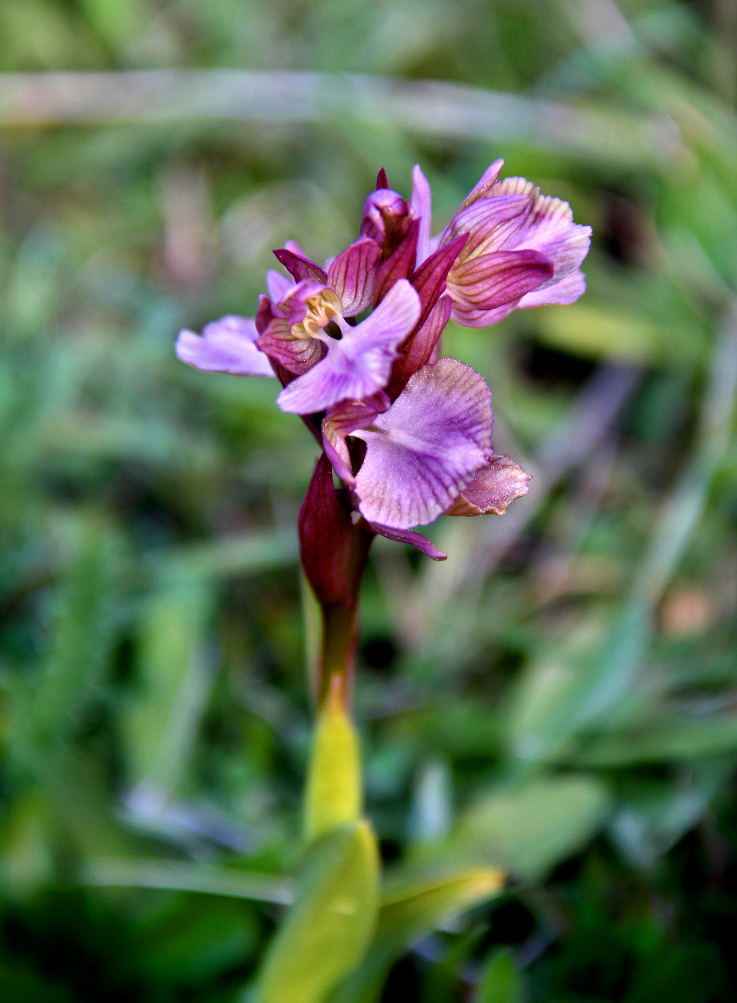 Tämä orkideatyyppi taitaa olla suomeksi kirkiö. Tämä on ehkä serapias lingua tai serapias parviflora. Ks. sivulta florasilvestre.es tai orquideasibericas.infoUseimmat serapias-orkideat näyttävät suunnilleen tältä. Löysin tämän yhden yksilön toukokuun alussa El Torcal -vuoren juurelta Camino de Mozarabe -reitin varrelta.