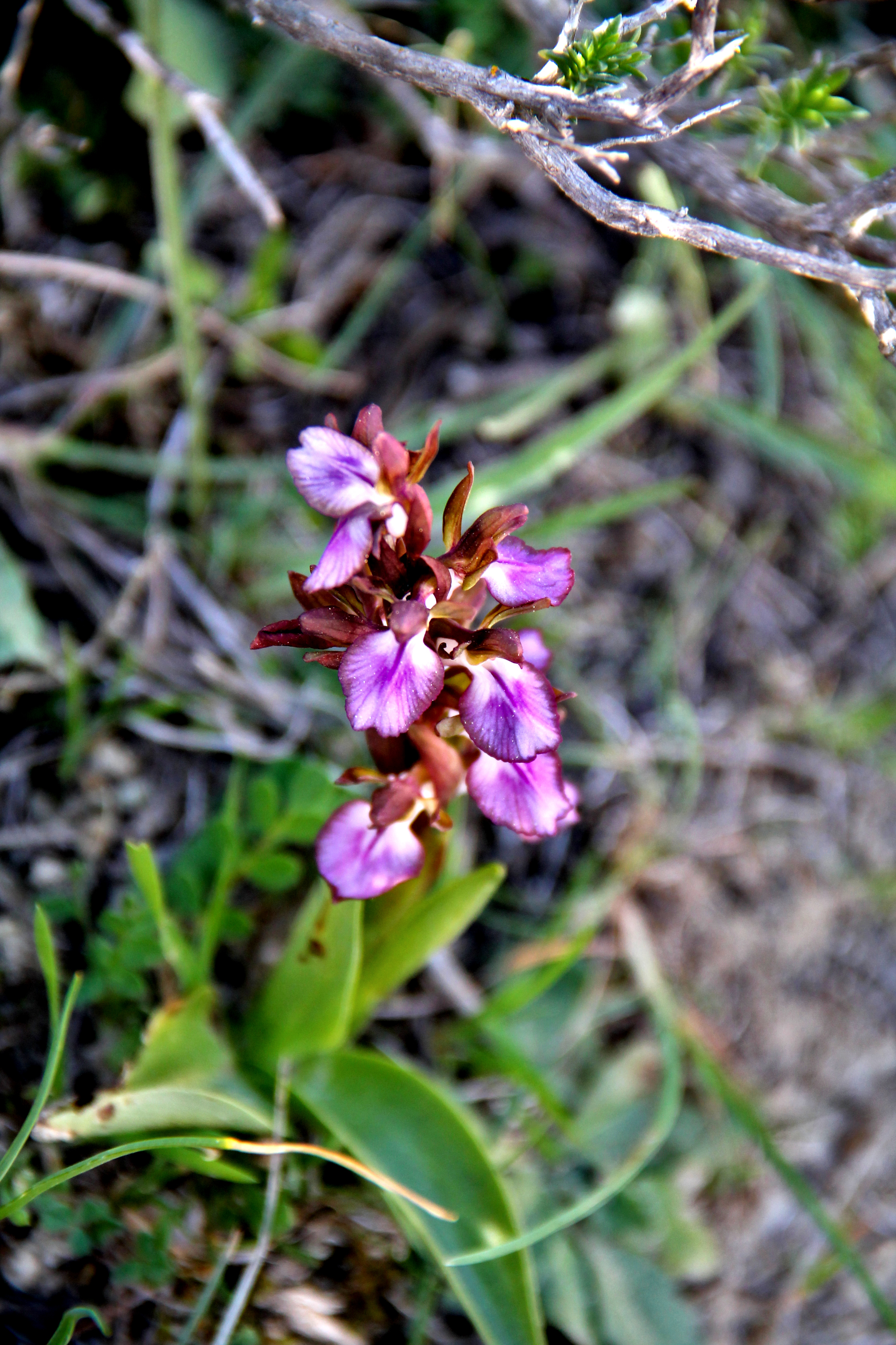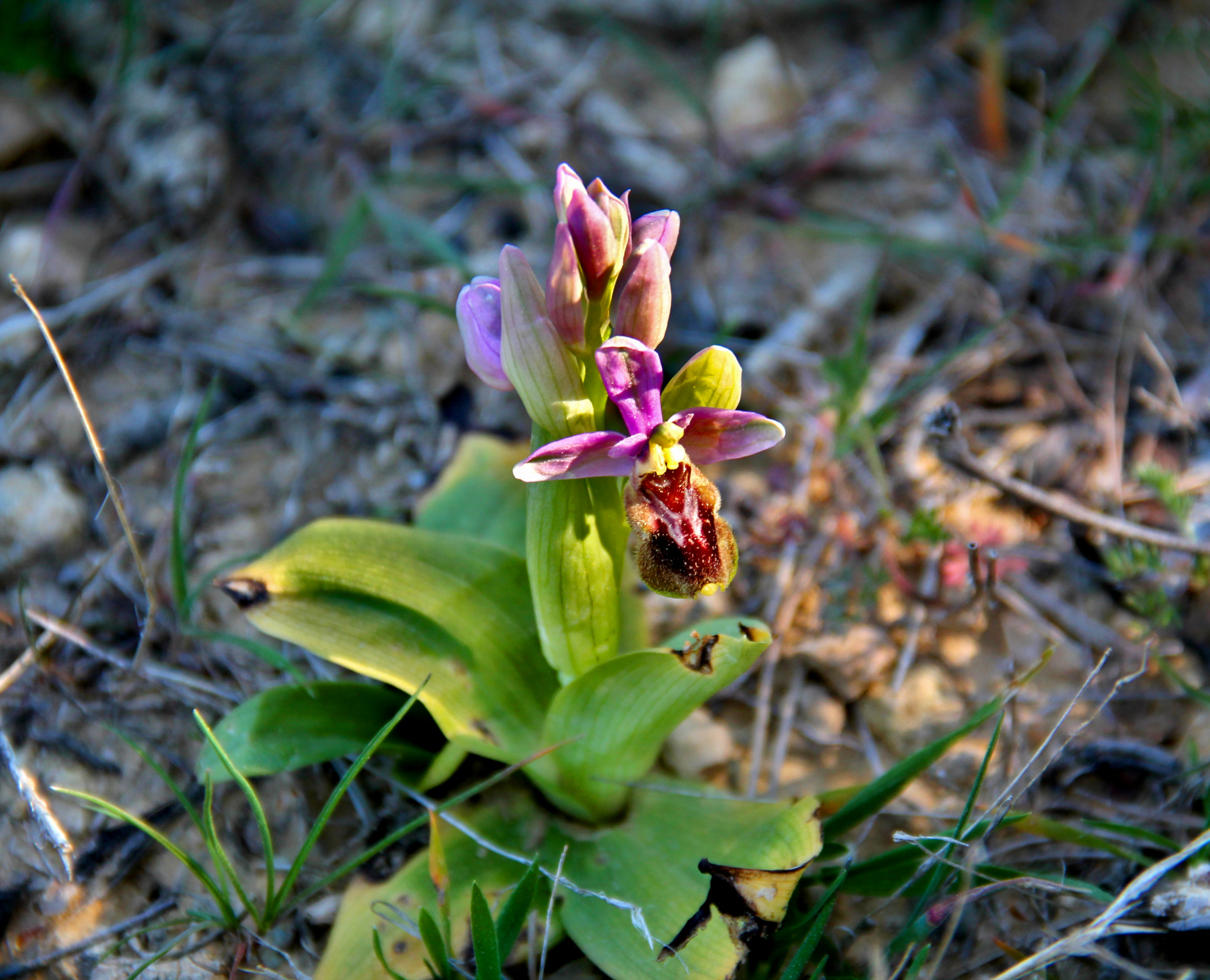 Tätä villiorkideaa on näkynyt täällä eniten. Tämä on ehkä ophrys fusca, joka voisi suomeksi olla tumma mehiläisorho, koska englanniksi se on sombre bee-orchid tai dark bee-orchid.