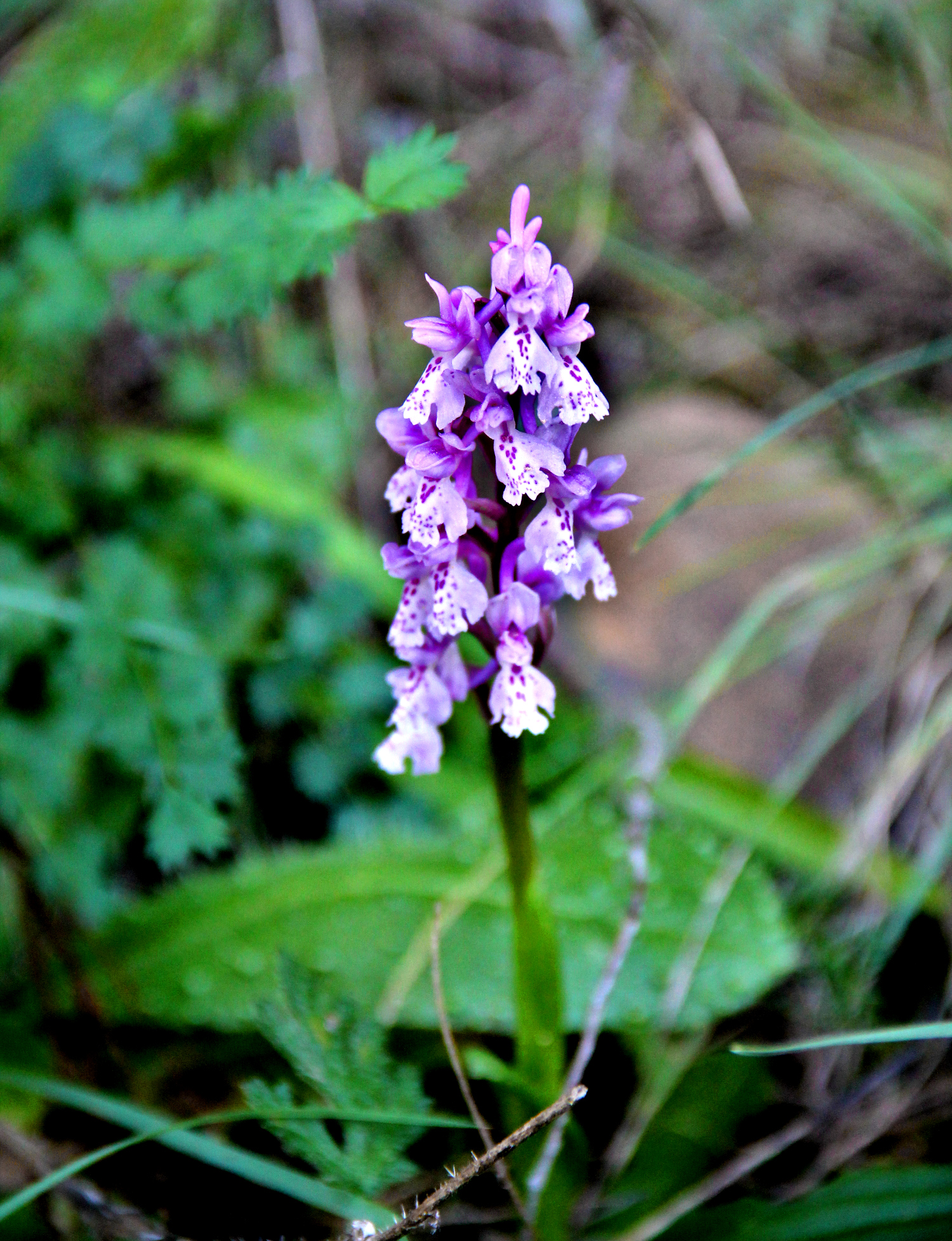 Nyt olen tosiaan tuijottanut intensiivisesti pientareita etsien orkideoja ja muita nättejä kukkia ja saatoin toissapäivänä bongata vielä yhden ihan uuden orkidean. Ehkä tuo on tosiaan joku maariankämmekkä, netin kuvista en ole löytänyt tuolla lailla täplikkäistä kuvia, mutta ehkä tuo kuuluukin siihen sukuun, eli https://www.orquideasibericas.info/genre/dactylorhiza