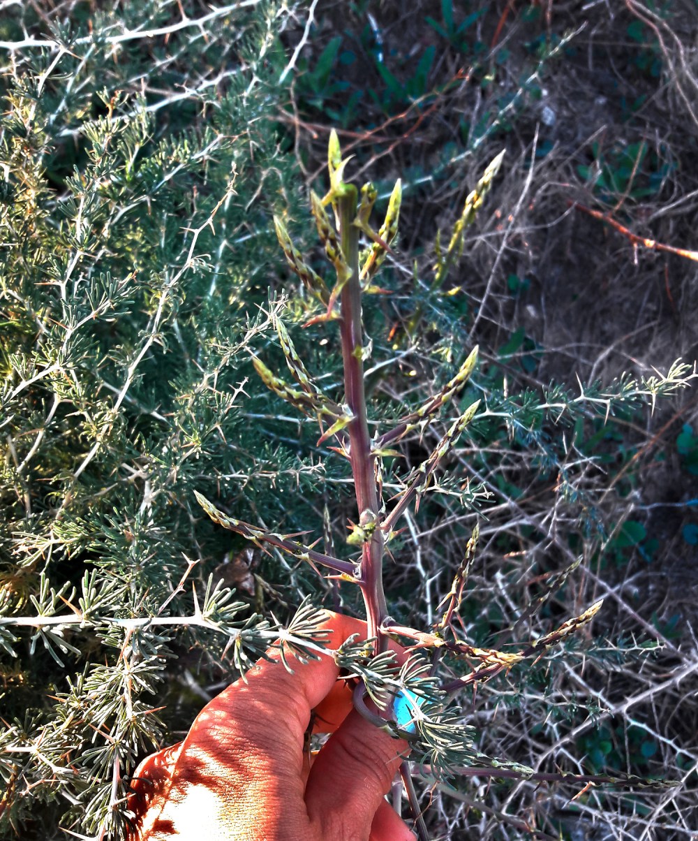 Espanjassa kasvaa villiparsaa eli neulaparsaa (asparagus acutifolius). Tuo piikikäs pensas ei tuo lainkaan mieleen niitä siistejä parsanippuja, joita kaupoissa myydään. Pensaan lehdet ovat karkeita piikkejä, jotka pistelevät ihoani kerätessäni pensaan keskellä kasvavia versoja. Neulaparsan versot ovat tosi eri näköisiä kuin pensas.