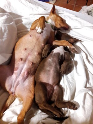 Pennut olivat olleet tosi terveitä ja kakkasivat täydellisiä pötkylöitä ekat 12 viikkoa. Ne saivat rabiesrokotteet sekä 8-viikkoisina että täyttäessään 12 viikkoa (piti antaa rabiesrokote Suomen säädösten takia uudestaan, jotta pääsivät matkustamaan 16-viikkoisina). Rokotepäivänä huomasimme, että valkoinen pentu Samira ripuloi, oksensi eikä syönyt. Sitä pari päivää katseltuamme menimme eläinlääkäriin, jossa Samppa sai pari pistosta ja lyhyen anti- ja probioottikuurin. Sen vointi oli hieman parempi jo eläinlääkäripäivän aamuna ja seuraavana päivänä Samppa oli jo aika normaali. Kävimme ostamassa kaupasta sille kaikkia mahdollisia herkkuja, jotta ruoka maistuisi. Kavalkadiin kuului kananmunia, kananlihaa, jauhelihaa, vuohenjuustoa ja vuohenmaitoa koiranmakkaran, nappuloiden ja eläinlääkäristä ostetun palautumisruoan lisäksi.