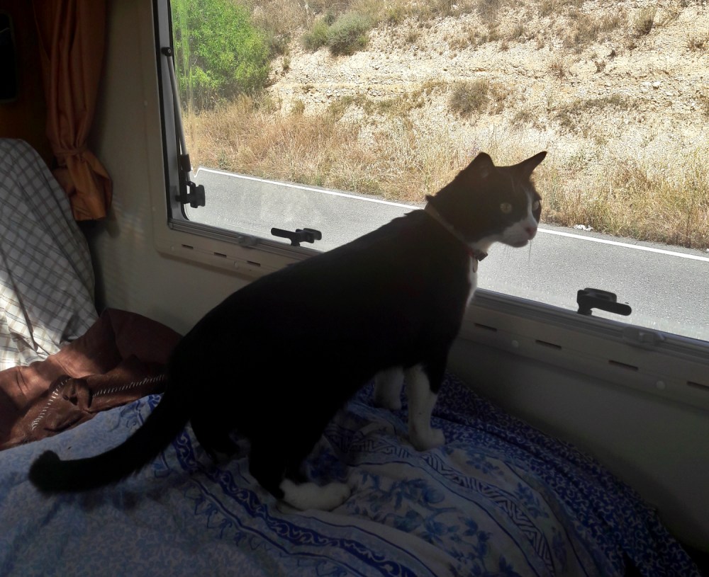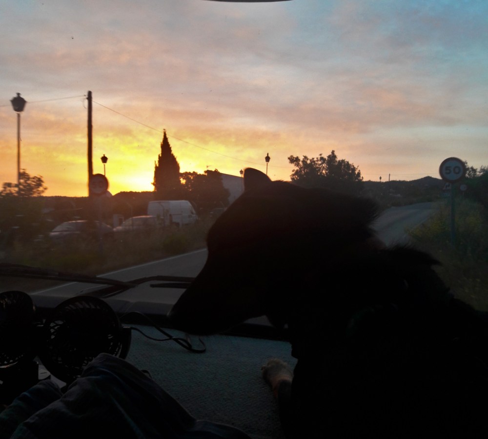 Menomatkalla Espanjaan yövyimme matkailuautoinemme aina leirintäalueilla, mutta nyt oletimme, että ne kaikki olisivat kiinni ja yöpyisimme parkkipaikoilla. Yllätykseksemme viime keväänä tutuksi tullut leirintäalue Xeracossa oli auki. Ohi ajaessamme se näytti kovin täydeltä (koronariski) ja vaikka siellä koirat on sallittu, niin enpä tiedä mitä olisivat sanoneet, kun olisin kertonut mukana olevan viisi koiraa ja yksi kissa. Kaikki leirintäalueet eivät hyväksy lainkaan lemmikkejä ja joissakin tällaista lössiä pidettäisiin liian isona, vaikka lemmikit muutoin olisivatkin sallittu.